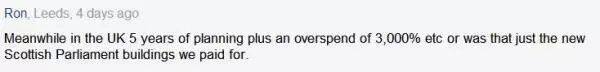 Ron:在英国,这需要5年的时间来规划,外加超过预算3000%的花费,就像造苏格兰议会大厦这样。