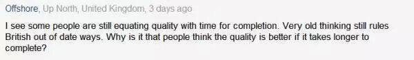 Offshore:有些人还认为质量和速度成正比,这是过时的想法了,但在英国却还盛行着。为什么大家会觉得花更多时间完成的东西质量会更好呢?